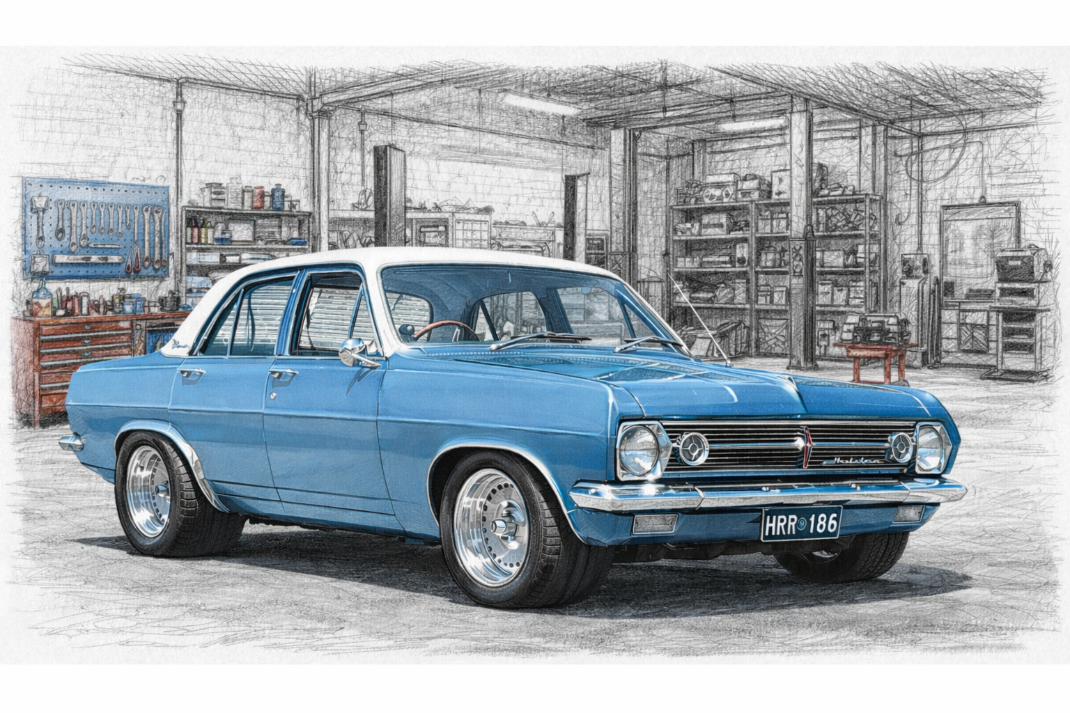 Holden HK ute 30x60cm panoramic canvas print